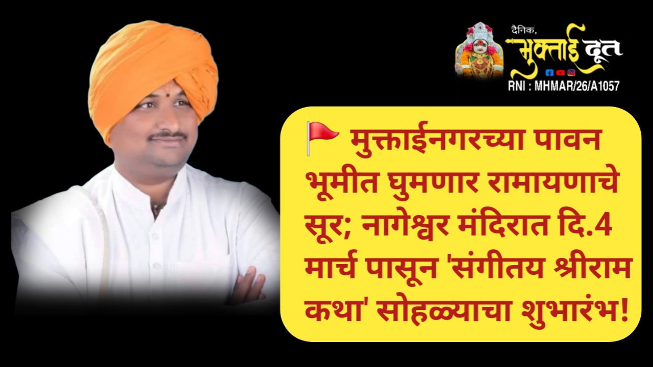 - 🚩 मुक्ताईनगरच्या पावन भूमीत घुमणार रामायणाचे सूर; नागेश्वर मंदिरात ‘संगीतय श्रीराम कथा’ सोहळ्याचा दि. 4 मार्च पासून शुभारंभ!